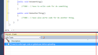Una característica muy interesante es la ventana de Lista de Tareas (Task List) ya que nos permite crear nuestra propia lista de tareas o tomar de los comentarios algunas marcas que se dejan en el código para recordar que requieren o requerirán atención.